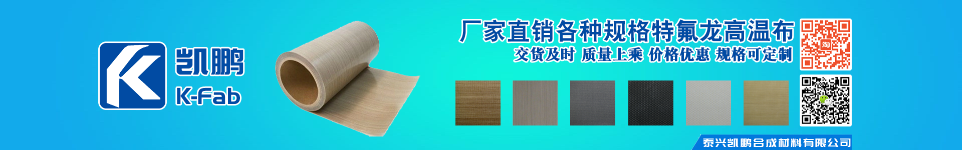 泰興市凱鵬合成材料有限公司是以聚四氟乙烯(PTFE)和硅橡膠涂層制品為特色的集生產和貿易為一體的復合型企業,立足于氟、硅系列浸漬制品的研發、生產和銷售,是中國氟、硅合成材料的開拓者、行業中的佼佼者。 公司主要產品有: PTFE特氟龍耐高溫布、層壓布、 硅膠布、特氟龍網格輸送帶、粘合機帶、特氟龍膜膠帶、特氟龍粘膠帶、特氟龍烤盤片、硅膠布粘膠帶和凱芙拉布等產品。產品被廣泛應用在航天、航空、太陽能、汽車、電子、電器、高溫絕緣材料、食品包裝、塑料制品、造紙、印刷、印染、服裝、化工防腐等工程。 公司秉承“以質量求生存,以信譽求發展,以用戶為上帝,以務實為人品!”的經營理念,本著“科技先導,持續創新,質量求真,顧客滿意”的質量方針。目前公司產品已遠銷歐美、中東、東南亞、臺灣、香港等幾十個國家和地區,在國內外市場上獨占鰲頭。熱忱歡迎廣大客戶前來考察、指導、洽談業務。經營理念:品質至尊、誠信為本發展戰略:立足氟硅、同心多圓、引領市場、創造特色質量方針:科技為先,質量為本,服務為榮,改進